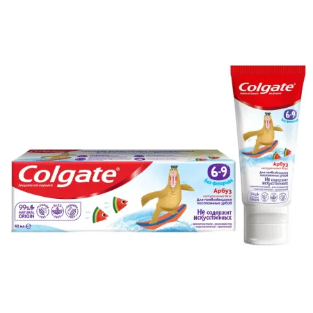 Новая детская зубная паста от любимого бренда Colgate со вкусом сочного арбуза для детей в возрасте от 6 до 9 лет помогает детям начать самостоятельно заботиться о своем здоровье, способствует росту полезных бактерий и восстанавливает здоровый уровень ph (водородный показатель, характеризующий концентрацию свободных ионов водорода в воде). Ваш ребенок на пути к здоровой улыбке на всю жизнь!