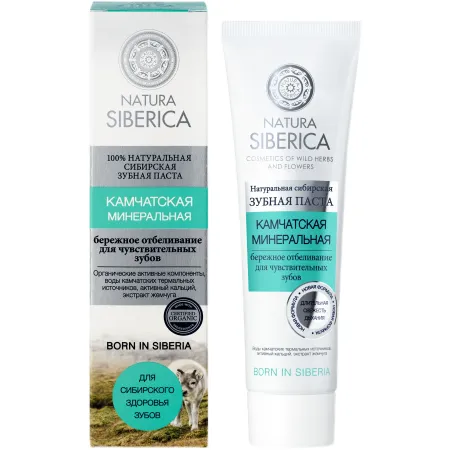 Зубная паста «Камчатская минеральная» тщательно очищает и восстанавливает зубную эмаль, устраняет микротрещины, эффективно защищает от кариеса. Соли камчатских термальных источников очищают и полируют зубную эмаль, не повреждая ее структуру, укрепляют и снимают воспаление десен. Вулканический кальций встраивается в структуру эмали, делая ее более прочной, гладкой и блестящей. Хитозан препятствует образованию налета.