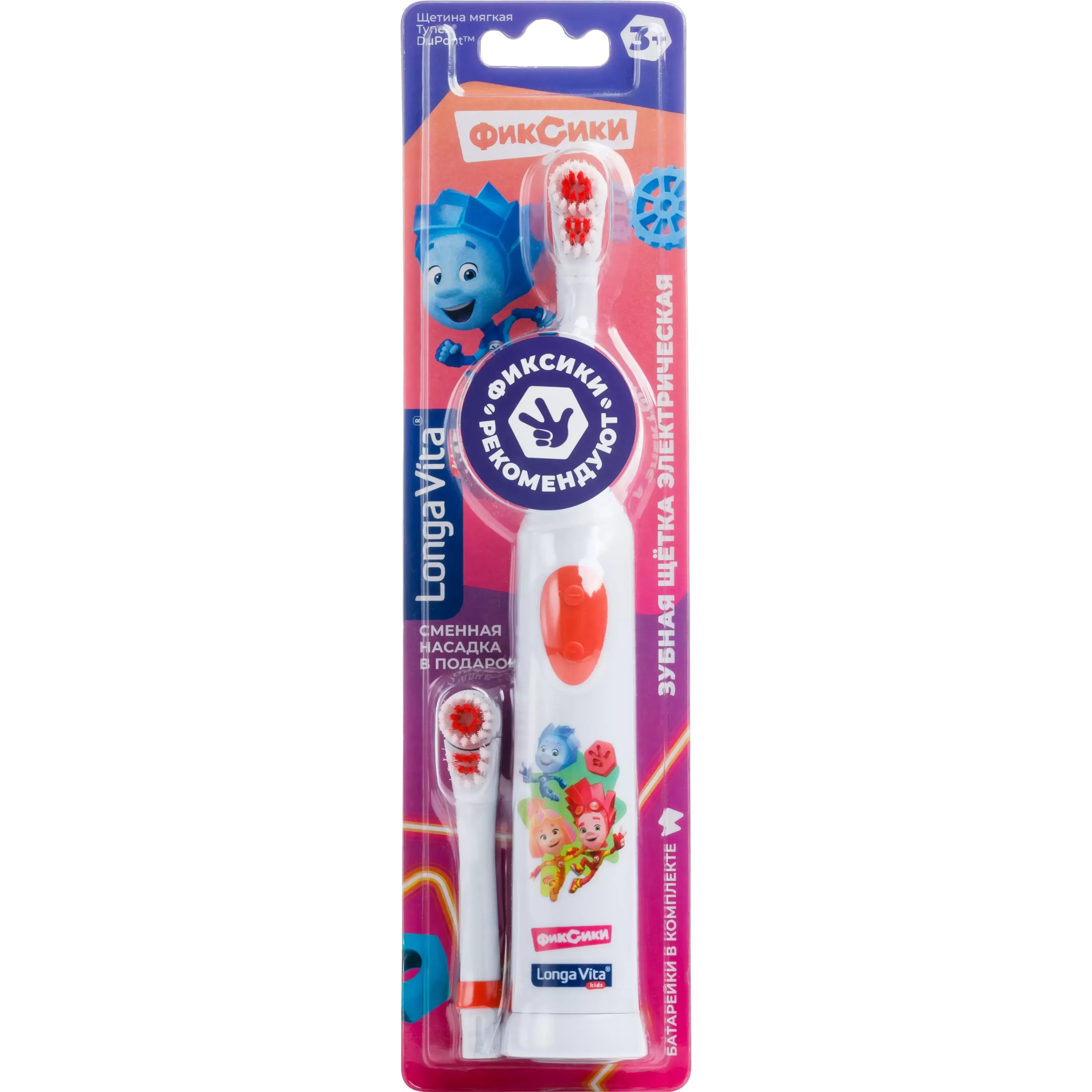 Детская электрическая зубная щетка Longa Vita «Фиксики», 2 насадки, от 3-х лет, 1 шт.