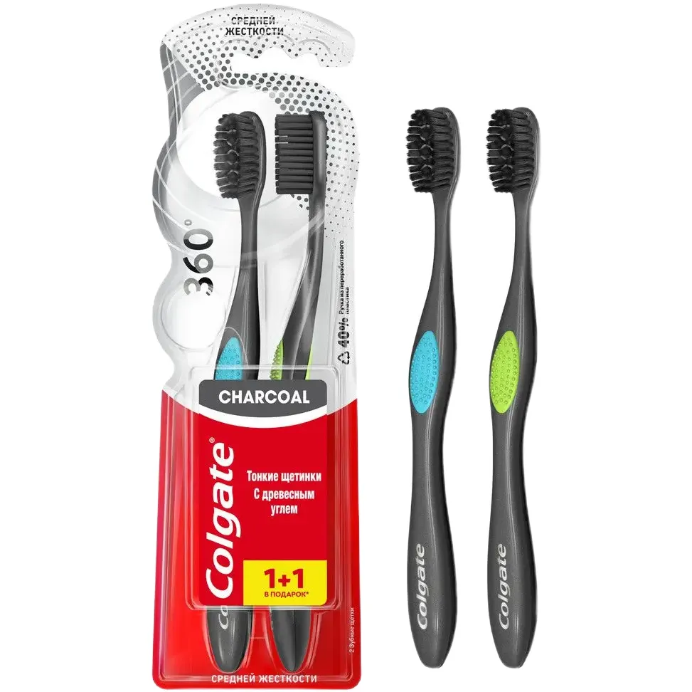 Зубная щетка Colgate «Древесный уголь», средней жесткости, 1+1 шт.