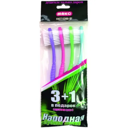 Набор зубных щёток МАКС «Народная», 3+1 шт.