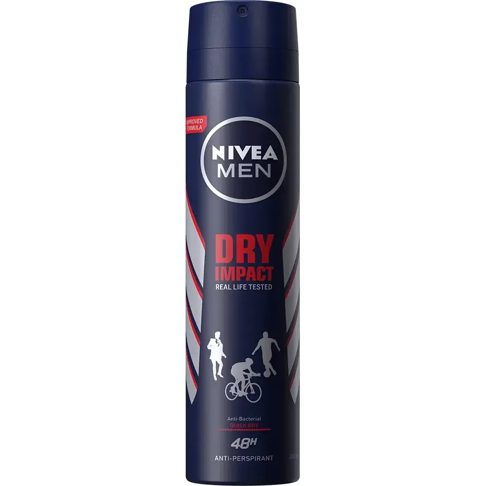 Дезодорант-спрей Nivea Men «Dry Impact» обеспечивает до 48 часов надежной антиперспирантной защиты. Высокоэффективная формула двойного действия эффективно борется с влажностью подмышек и тем самым предотвращает появление неприятных запахов. Дезодорант также придает мужественный, свежий аромат.