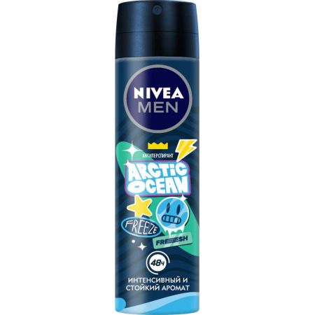 Антиперспирант "Arctic Ocean Teens" от NIVEA MEN со сбалансированным ароматом с нотами морской соли, кедра, свежего шалфея и мяты помогает обеспечить защиту от раздражения кожи, пота и запаха на 48 часов. Новый стойкий аромат придает ощущение свежести океана, ощущения свежи как после душа на весь день. ЭКСКЛЮЗИВ В ПЯТЕРОЧКЕ