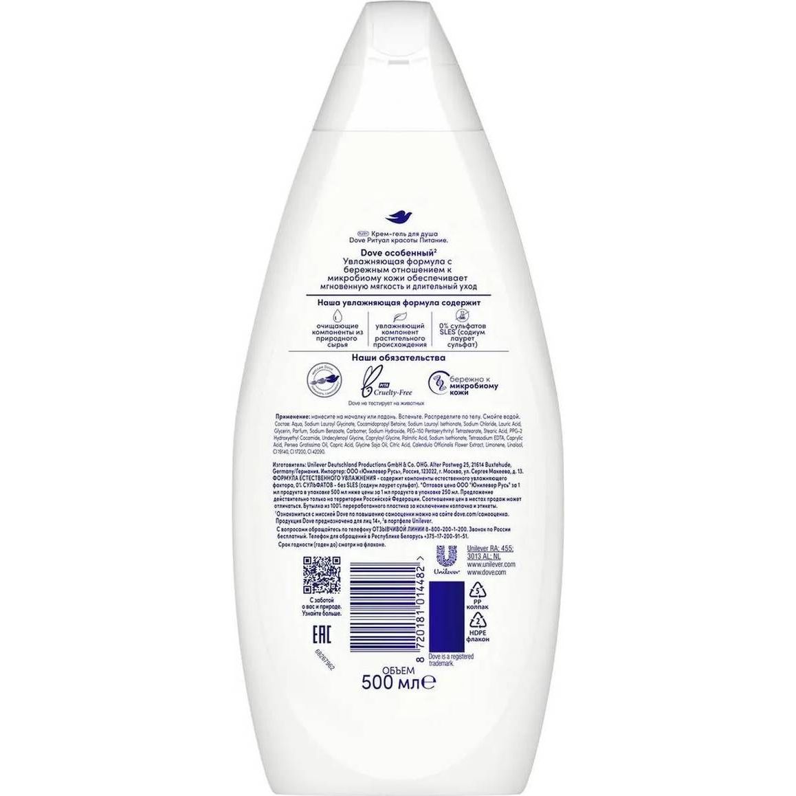 Бессульфатный увлажняющий крем-гель для душа Dove «Ритуал красоты. С маслом авокадо и экстрактом календулы», 500 мл.