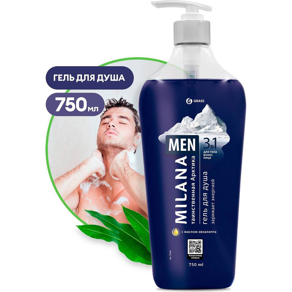 Гель для душа Milana Men «Таинственная арктика с маслом эвкалипта», 750 мл.
