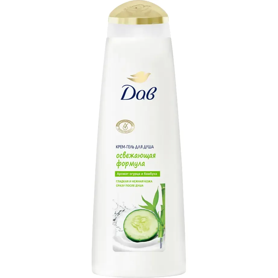 Крем-гель для душа, Dove, образует облако кремообразной пены и бережно очищает кожу. Аромат огурца и бамбука подарит Вам ощущение свежести. Перед использованием ознакомьтесь с инструкцией и мерами предосторожности на упаковке.