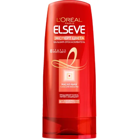 Бальзам для волос Elseve «Эксперт цвета» - серия по уходу за окрашенными и мелированными волосами. Его формула сочетает в себе питательный концентрат и системы защиты от UVA/UVB-лучей, в результате чего бальзам усиленно питает волосы изнутри, защищает их от воздействия излучения и других внешних факторов. Как результат, ваши волосы оптимально защищены, они более шелковистые и блестящие. Цвет дольше остается ярким, сияющим и интенсивным.