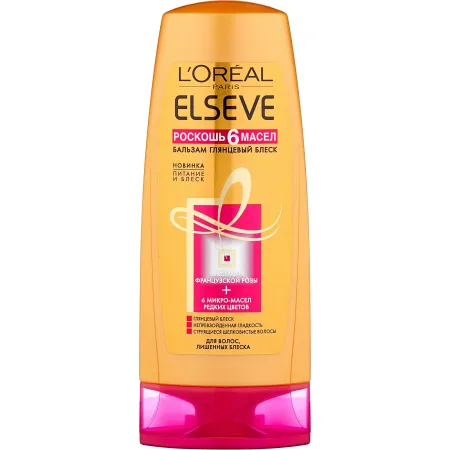 Бальзам для волос серии Эльсев «Роскошь 6 масел» – новая разработка лаборатории L’Oréal Paris, которая позволит преобразить тусклые, лишенные блеска волосы. В формуле бальзама – эликсир из 6 драгоценных микро-масел редких цветов, дополненный экстрактом французской розы. Этот активный комплекс питает волосы по всей длине, преображая их, разглаживает и дает восхитительный глянцевый блеск. После использования бальзама остается вуаль нежного и утонченного цветочного аромата.