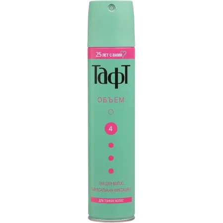 Taft Объем Сверхсильная фиксация для тонких волос придает объем на весь день. Формула Taft Объем содержит более 3 миллионов молекул коллагена и молекул, придающих волосам воздушный объем без утяжеления.