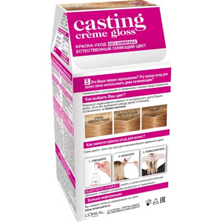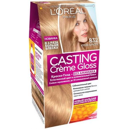 | Цвет: блонд Полное название оттенка: 832 Крем-Брюле Текстура: кремовая Тип краски: безаммиачная | Эффект: сияющий цвет, блеск, питание Тип волос: для всех типов волос Серия: Casting Crème Gloss |