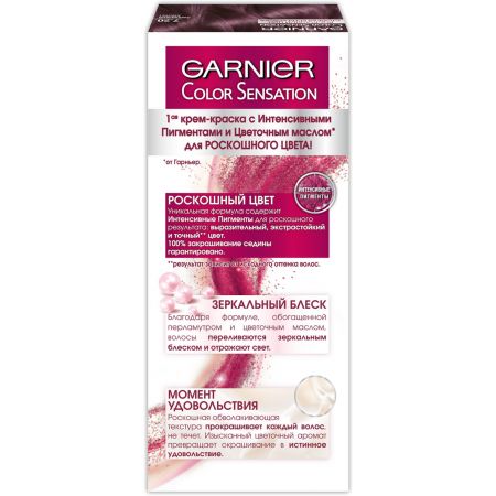 Откройте для себя насыщенный цвет Garnier Colour Sensation с ультра-покрывающим слоем. С перламутром и цветочными маслами. Ваши волосы сияют благодаря Аргановому маслу, известному своими питательными свойствами.