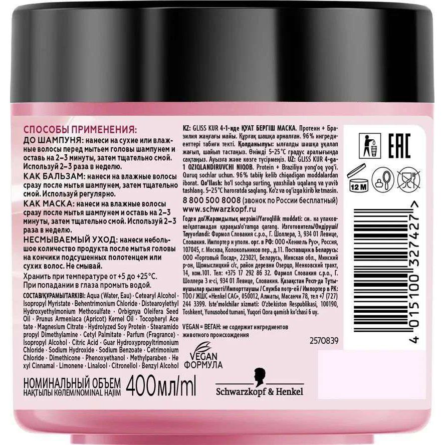 Питательная маска Gliss Kur 4-в-1 для сухих волос «Укрепляющий микс», 400 мл.