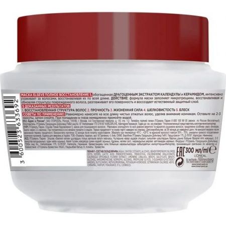 Тающая текстура высококонцентрированной маски ЭЛЬСЕВ ПОЛНОЕ ВОССТАНОВЛЕНИЕ 5 мягко ухаживает за волосами, восстанавливая поврежденные волокна изнутри и насыщая их питательными компонентами. Действие уникальной формулы снаружи: усиливается естественный защитный барьер, поверхность волоса разглаживается.