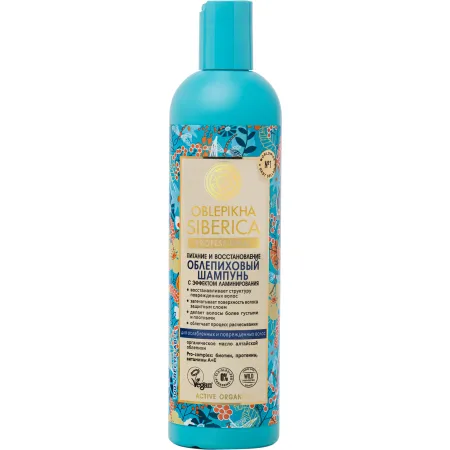 Деликатно очищает волосы, интенсивно восстанавливает их поврежденную структуру и защищает от термовоздействия при горячей укладке. Идеально подходит для ухода за ослабленными, окрашенными и мелированными волосами, а так же волос после химической завивки. Запечатывает поверхность волос защитным слоем, создавая эффект ламинирования, разглаживает и уплотняет их, облегчая процесс расчесывания. Входящие в состав шампуня витамины и аминокислоты питают и восстанавливают волосы. После применения шампуня волосы становятся заметно более гладкими, упругими и послушными. Масло алтайской облепихи и марокканское масло арганы способствуют образованию кератина, обеспечивающего волосам прочность и блеск. Масла семян сибирского льна и арктическая роза и цетрария снежная сохраняют влагу глубоко в структуре волос.