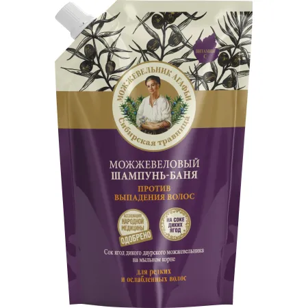 Можжевеловый шампунь-баня для волос «Против выпадения волос» Рецепты бабушки Агафьи, 500 мл.