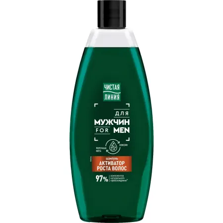Мужские волосы и кожа головы нуждаются в особом уходе. Чистая Линия представляет новую серию продуктов для мужчин. Шампунь содержит 97% компонентов натурального происхождения, бережно очищает волосы и кожу головы и способствует активации роста волос. Перечная мята и кофеин в составе оказывают комплексное воздействие: