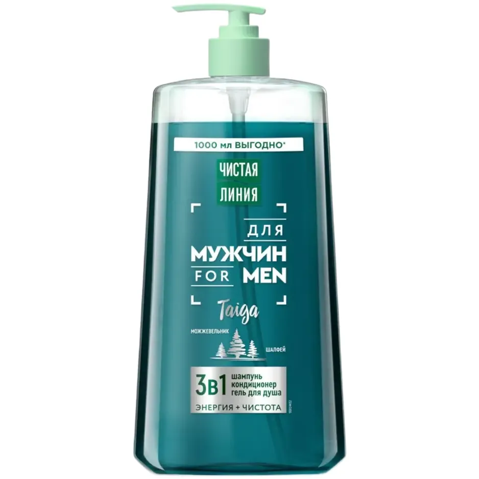 Шампунь для волос Чистая линия Men 3 в 1 «Энергия и чистота. Можжевельник и шалфей», 1 л.