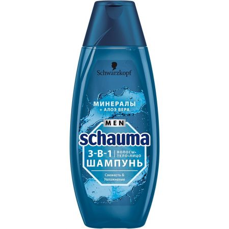 Шампунь для волос, тела и лица Schauma Men 3 в 1 «Увлажнение», 400 мл.