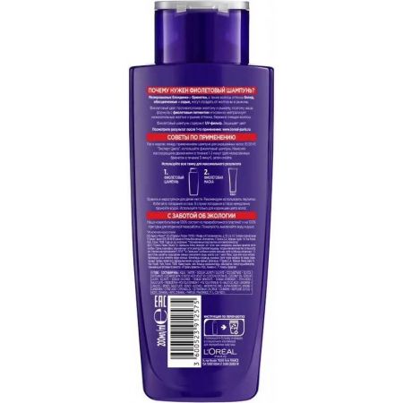 Шампунь L’Oreal Elseve «Эксперт цвета. Фиолетовый. Против желтизны», 200 мл.