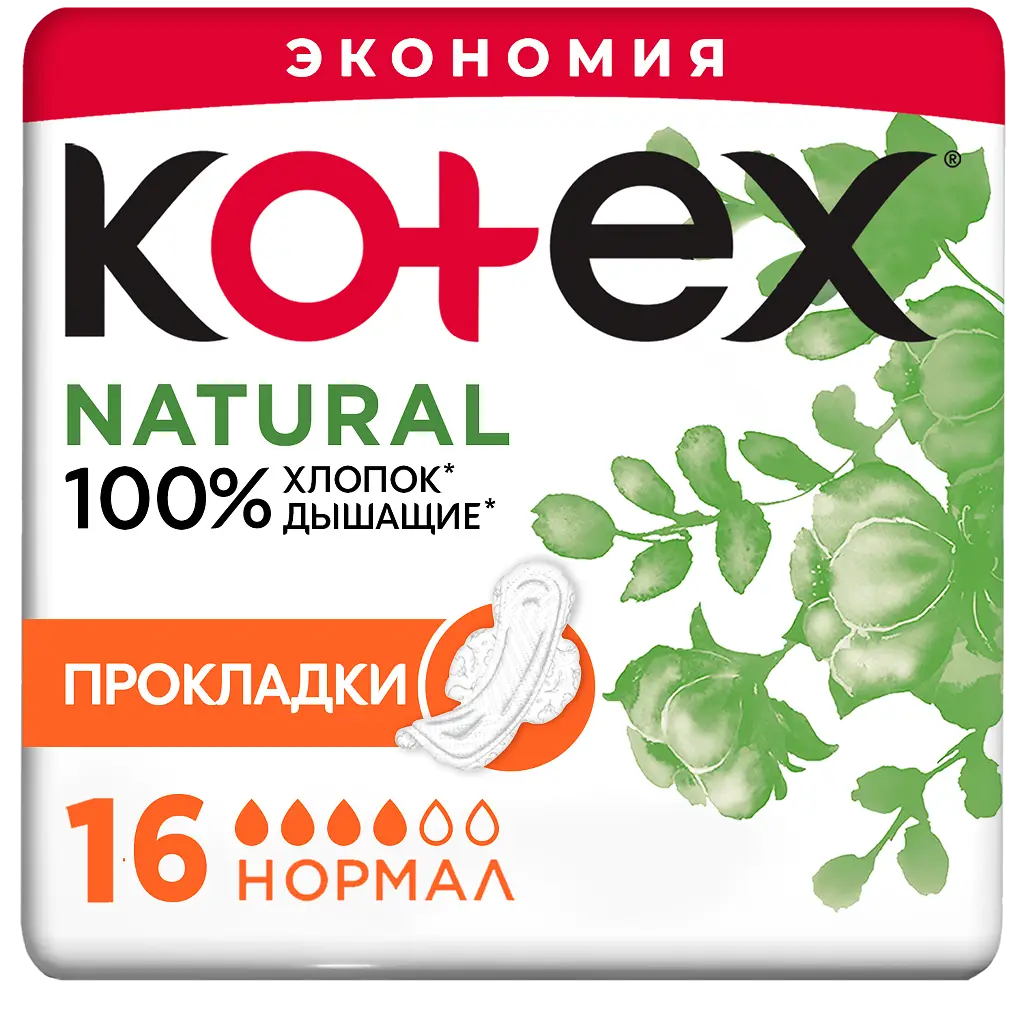 Улучшенный верхний слой прокладок Kotex Natural «Normal» полностью экологичен: он создан без использования вредных веществ и содержит только хлопок. Новая улучшенная задняя поверхность прокладок позволяет коже дышать. Использование натуральных материалов делает эти гигиенические прокладки подходящими для всех девушек без исключения, в том числе - для обладательниц чувствительной кожи. Эти прокладки гибкие и в точности повторяют форму тела, плотно прилегают и обеспечивают полноценную защиту.