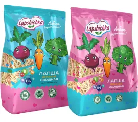 Разноцветная овощная лапша Lapshichka - это цветные макароны, приготовленные из муки твердых сортов пшеницы и овощей: свеклы и шпината. Именно натуральные овощи делают наши макароны такими яркими. Разноцветные макароны не только вкусное и полезное блюдо, но и украшение стола.