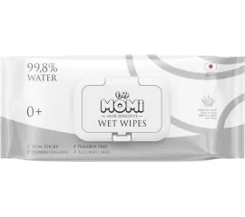 Влажные салфетки для новорожденных MOMI — это незаменимый помощник в уходе за малышом. Они обогащены витамином Е, не содержат спирта, запаха и парабенов. Салфетки созданы специально для нежной кожи ребёнка с первых дней жизни. Они изготовлены из нетканого материала и содержат только натуральные компоненты (вода — 99,8%). Благодаря этому, они не вызывают раздражения, покраснения и обезвоживания кожи. Салфетки очень комфортны в использовании. Они не оставляют ощущения липкости и стянутости на коже. А дополнительный клапан обеспечивает полную защиту от высыхания. Влажные салфетки MOMI эффективно очищают кожу рук, лица, тела и зону под подгузником.
