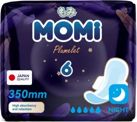 Ночные женские гигиенические прокладки Momi Night с крылышками (35 см), 6 шт.