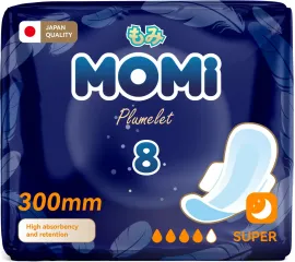 Ночные ультратонкие женские прокладки с крылышками в индивидуальной упаковке - инновационная защита и комфорт на протяжении всей ночи! Прокладки разработаны в Японии с учетом особенностей женского тела. Особые волокна и новая система впитывания «PremierAbsorb+» мгновенно абсорбирует внезапные и обильные выделения. Суперабсорбент полностью впитывает даже сверхобильные выделения, поддерживая кожу сухой, предотвращая раздражение и обеспечивая максимальный комфорт на протяжении всей ночи. Деликатный верхний слой создан из мягкого и гипоаллергенного хлопка, он обеспечивает нежное прикосновение к коже, минимизируя риск раздражения. Уникальный супер-дышащий слой распределяет влагу равномерно, обеспечивая естественную циркуляцию воздуха, и предотвращает накопление бактерий, что делает их идеальным выбором для длительного использования. Ночные прокладки Моми разработаны специально для обеспечения надежной защиты во время сна. Их увеличенный размер в 35 см позволяет обеспечить оптимальное покрытие, предотвращая протекания и обеспечивая полноценный отдых ночью. А анатомическая форма прокладки точно повторяет контуры вашего тела, предоставляя свободу движений и максимальный комфорт даже в самые активные дни. Крылышки обеспечивают надежное крепление прокладки к белью, предотвращая ее смещение, а боковые барьеры обеспечивают дополнительную защиту от протекания. Ночные MOMI также идеально подходят для использования в послеродовый период. Благодаря их тонкому и незаметному дизайну, вы можете быть уверены в своей защите в любой ситуации.