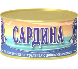 Состав: сардина тихоокеанская (иваси), масло подсолнечное рафинированное, соль поваренная пищевая, перец душистый или его экстракт.