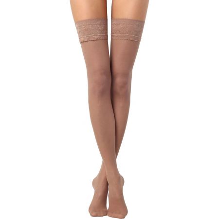 Плотные чулки из мультифиламентных нитей с ажурной самоподдерживающейся эластичной резинкой