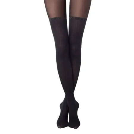 Белорусские фантазийные колготки FANTASY GLAM с имитацией чулок и рельефными вертикальными полосами поможет любой девушке всегда выглядеть стильно и женственно. Они отличаются не только оригинальным дизайном, но и плоским швом, гигиенической ластовицей, комфортным поясом и средней плотностью 30 den. К тому же у изделия имеется изысканный бортик из люрекса на чулках с вывязанной надписью бренда, что придает элегантности и соблазнительности этой интересной модели.