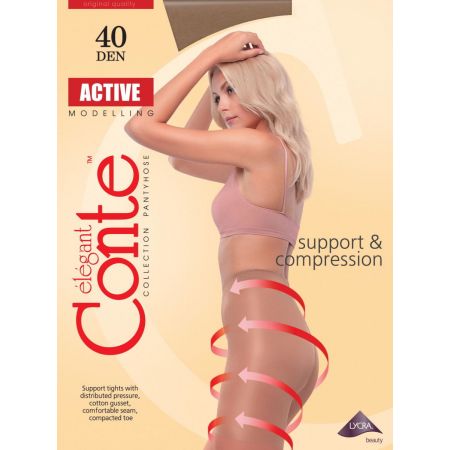 Полупрозрачные колготки с утягивающими шортиками Active 40 моделируют фигуру, визуально уменьшая объём бёдер, талии и живота.