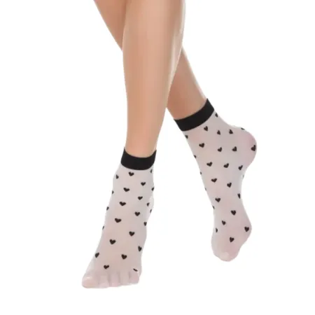 Тонкие фантазийные носки с рисунком сердечки - идеальное дополнение к романтичному образу современной девушки.
