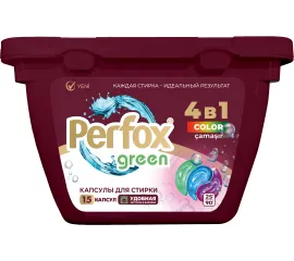 Капсулы для стирки 4 в 1 Perfox Green «Color», 15 шт.