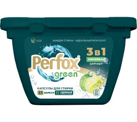 Капсулы для стирки 3 в 1 Perfox Green «Universal», 15 шт.