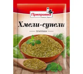 Состав: соль, кориандр молотый, уцхо-сунели молотый, лавровый лист молотый, базилик молотый, сахар, укроп молотый, тимьян молотый, петрушка молотая, перец красный молотый, куркума молотая.