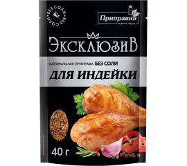Приправа придаст нежному мясу индейки изысканный вкус и аромат. Состав: паприка красная молотая, чеснок сушеный дробленый, лук репчатый сушеный дробленый, кориандр дробленый, перец красный молотый, куркума молотая, базилик сушеный, имбирь молотый, томаты молотые, пажитник молотый, тмин, корица молотая, мускатный орех молотый, перец черный молотый, лавровый лист молотый.