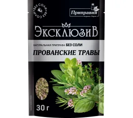 Натуральная приправа без соли "Прованские травы"— это традиционная смесь ароматических трав. Композиция пряных трав отлично сбалансирована и прекрасно сочетается с мясом, птицей , рыбой и овощами. Натуральная приправа без соли "Прованские травы" отлично дополнит вкус супов, соусов и салатов. Состав: Базилик сушеный, розмарин дробленый сушеный, тимьян сушеный, чеснок измельченный сушеный, майоран сушеный, мята сушеная, паприка красная сушеная, чабер сушеный, шалфей дробленый сушеный, орегано сушеный.