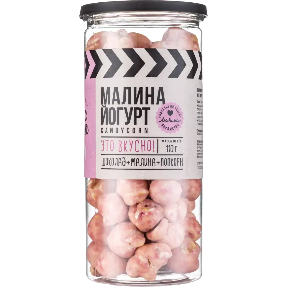 Попкорн Gourmet «MacGuffin - лакомство премиум-класса. Толстый слой белой шоколадной глазури, вкус спелой малины и йогурта с хрустящим попкорном внутри.