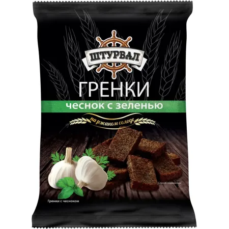 Гренки Штурвал с чесноком и зеленью на ржаном солоде.