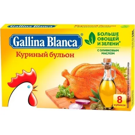 Самый популярный и любимый всеми кубик – это куриный бульон Gallina Blanca. Вы сделаете любое ваше блюдо ароматнее и насыщеннее, добавив кубик.