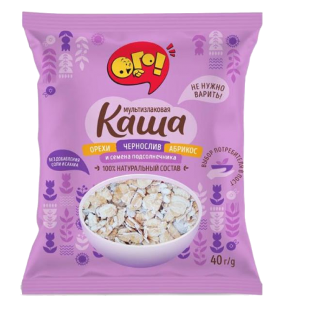 Каша мультизлаковая Ого! с абрикосом, черносливом, орехом и семенами подсолнечника, 40 г.