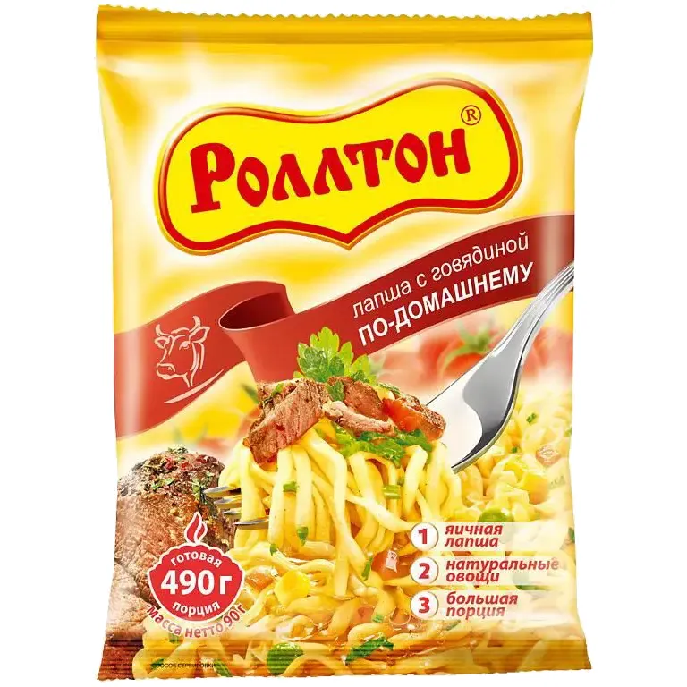 Как бы сильно вы ни были загружены делами, всегда есть время насладиться вкусным обедом или ужином с лапшой «Роллтон» с говядиной. Ее удобно заварить прямо в упаковке. Аромат специй и натуральных овощей, яркий вкус бульона и нежная яичная лапша зарядят положительными эмоциями и помогут справиться с голодом, где бы вы ни находились. Продукт изготавливается с использованием ингредиентов, которые создают вкус, аналогичный домашнему.