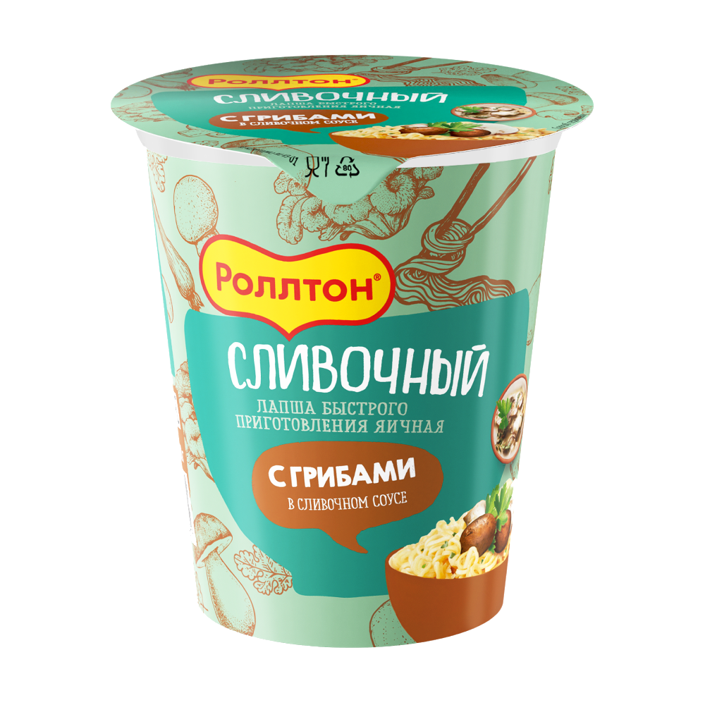 Лапша быстрого приготовления Роллтон с грибами в сливочном соусе, 70 г.