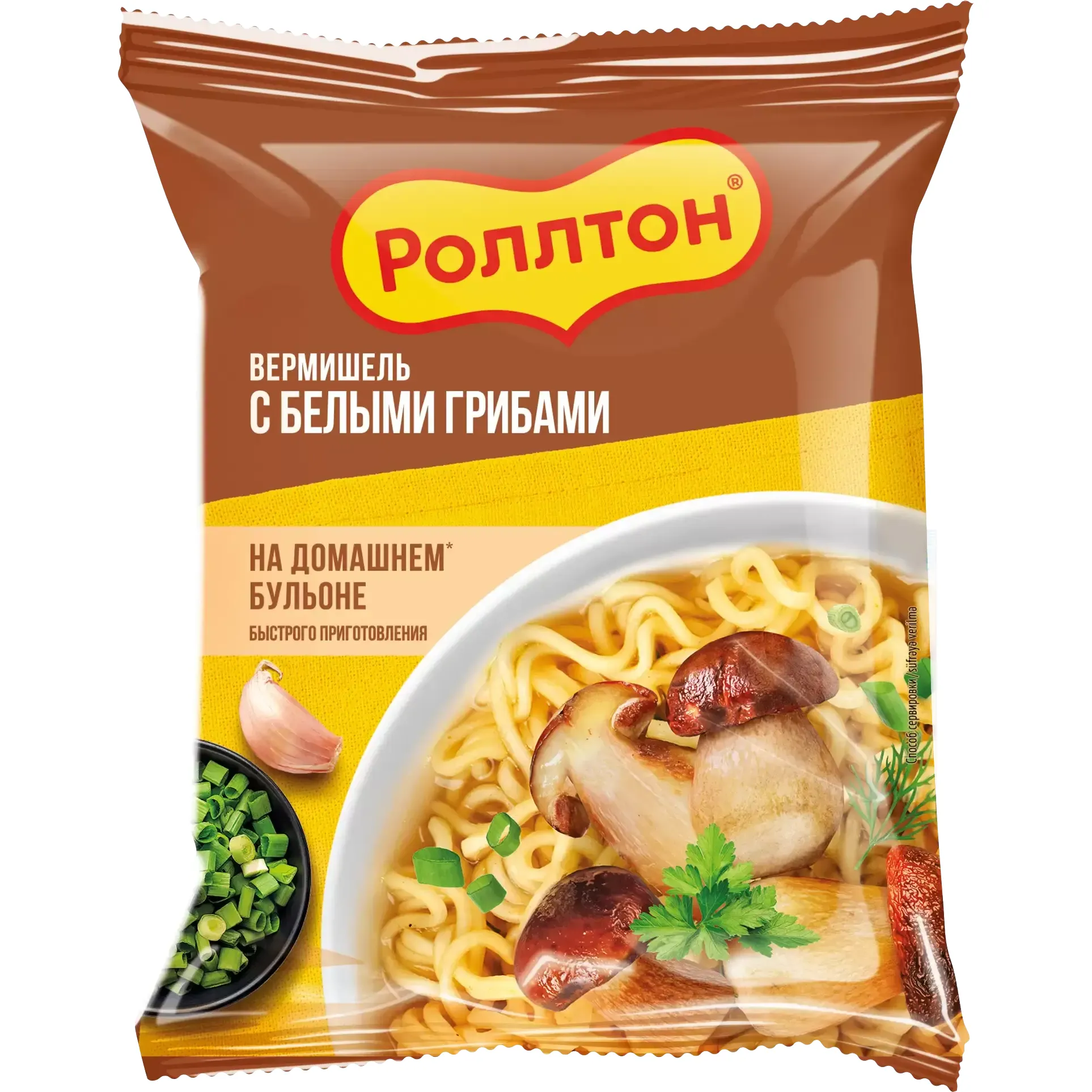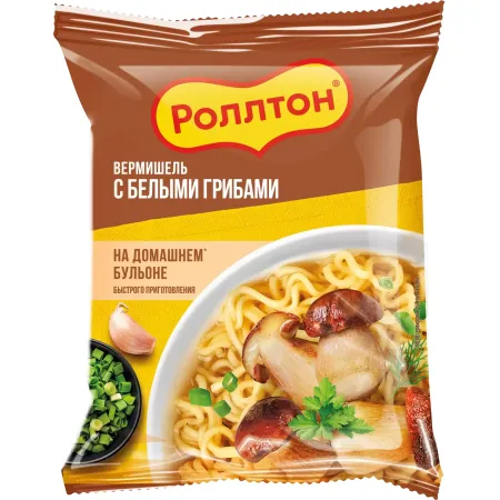 Вермишель на домашнем бульоне Роллтон «С белыми грибами», 60 г.