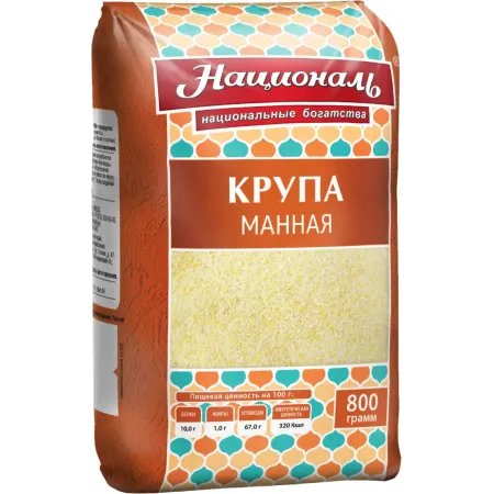 Крупа манная ТМ «Националь» отвечает самым высоким требованиям, производится по специальному заказу для нашей компании. Манная крупа изготавливается из пшеницы. Она быстро разваривается, хорошо усваивается, содержит минимальное количество клетчатки (0,2 %), богата растительным белком и крахмалом.
