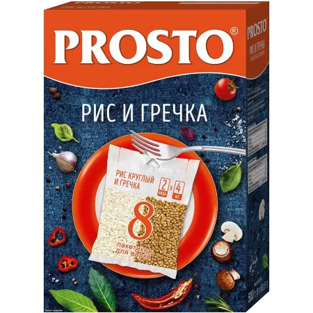 Набор наиболее популярных в России круп: 4 варочных пакетика с гречей и 4 с краснодарским рисом - в одной коробке.