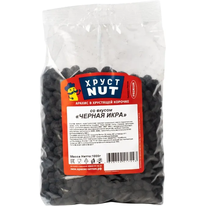 Необычайно вкусный арахис с нежным вкусом икры для гурманов и любителей морепродуктов. Арахис с в хрустящей корочке Черная икра это нежный ореховый вкус с глубоким и мягким послевкусием.