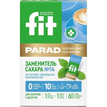 Заменитель сахара FitParad №14 обладает отличным вкусом, максимально приближенным к сахару, и приятным послевкусием. В составе природные подсластители – эритрит и экстракт стевии. Подойдет для любой диеты.