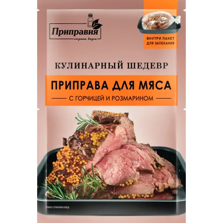 Приправа «Для мяса с французской горчицей и розмарином» и пакет для запекания Кулинарный шедевр, 30 г.